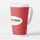 Funny latte mug for Mother's Day or any day to honour special moms! Red bandanna print background with white text that reads "Mother of teens. There may be wine in here"