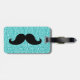 Funny Moustache Aqua Blue Glitter Luggage Tag