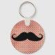 Funny Moustache On Cute Pink Polka Dot Background Key Ring