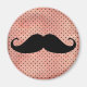 Funny Moustache On Cute Pink Polka Dot Background Magnet