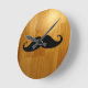 Funny Moustache on Shiny Wood Texture Background Round Clock