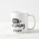 For all those people who like a slow start in the morninng, this is a fun mug done with watercolor effects and featuring a cute illustrated turtle on one side with the text 'slow start' above. On the other side is the text 'not a morning person'. There are ink splatter effects around both the texts. Natalie Kinnear Designs