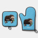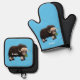 Funny musk ox cartoon illustration oven mitt & pot holder set