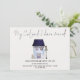 A fun design for cat owners to let everyone know your new address. Stylish handwriting style set script is at the top My Cat And I Have Moved, and easily personalise the text at the bottom with your details. A cute illustration of a house with a lamp post and cat is in the centre.