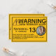 Get ready to laugh out loud with this hilarious 13th Birthday Invitation featuring a bold warning sign design! A bright yellow triangle with an exclamation mark boldly declares “Warning: New Teenager Alert!” while your teen’s photo takes center stage for a fun and unforgettable invite.