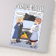 A custom cut sticker with a funny cartoon about New Year's Resolution. The images, background and text can be personalised. Original artwork by DBcartoons.