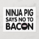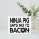 A funny design for vegetarians and vegans or anyone with a sense of humour. The text says, "Ninja Pig Says No to Bacon" with a cute cartoon ninja pig making the letter O in bacon. If you would like an alternative version of this design, please contact us through the GiftsBonanza store and we would be happy to assist. sgb01