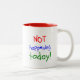 A mug with text that you can edit to express what it is that is "NOT happening today!" On one side of the mug the default text is "WORK", but just type in the box to set free your creativity and stubborn streak. On the other side, in red blue and green coloured handwriting, "NOT happening today!"