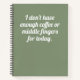 The perfect sassy notebook for one of 'those' days...or weeks. With a pretty sage green background, the modern bold white typography reads "I don't have enough coffee or middle fingers for today".