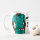 This fabulous coffee mug features an African American male nurse in green scrubs with text image "Nurse in Progress Please Wait" and personalised with your name and initials. Makes a great gift.