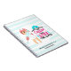 Spiral notebook with a humourous saying: First i drink the coffee, then I save the lives. Perfect for nurses. Featuring an illustration of a female nurse wearing a cute old fashioned nursing hat and carrying a giant hypodermic needle. Light blue and white striped background.