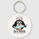 Funny nursing keychains with cute penguin nurse and quote. I'm a nurse what's your superpower. Personalizable text and colours. Funny gift idea for nurse week, nursing school graduate or RN registered nurses. Animal bird cartoon with syringe needle.