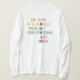 I love this shirt. I had written to the artist asking her if this picture was available on a shirt, and she wrote me back telling me where I could find the shirt. These shirts can be custom made to have a different saying. I loved this saying and went with it. The artist wrote me back later to tell me that she had seen my order go through. How's that for service? Pretty special. It's just as displayed. Perfect!