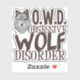Obsessive Wolf Disorder: If you are timber wolf obsessed, you will love this Obsessive Wolf Disorder sticker featuring a grey wolf. The grey wolf or western wolf is one of my favourite wild animals, because it travels with other awesome wolves in a pack and has a cool, strong eye gaze. A beautiful animal present for a wolf lover.