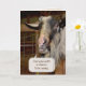 Hairy old goat in barn pen with tongue sticking out for humourous getting old birthday.