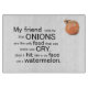 Cutting board for those with a wicked sense of humour - this is definitely a "laugh out loud" one! "My friend told me that onions are the only food that can make you cry. Until I hit him in the face with a watermelon." As well as being funny, the board is also customisable - so you can add your own text, or a name if you wish.