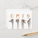 This is a watercolor painting of ostriches with transitioning emotions from calm to a meltdown. There are letters on top of each ostriches that reads “OMFG” in faux gold foil.