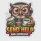 For the over-caffeinated professional! This high-detail comic owl clutching three coffee cups is the perfect "Send Help and Espresso" sticker for office workers, remote staff, and gamers. A vibrant, funny decal for laptops and water bottles.