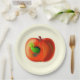 Happy Worm In Red Apple Funny Paper Plates - Custom Colours / or Text - MIGNED Painting Design