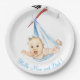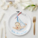 Customisable Funny Paper Plates with Stork Carrying Baby - MIGNED Painting - or Add Your Text / Name