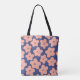 Funny pastel orange flowers on bright blue backgro tote bag