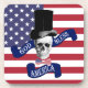 Funny patriotic American design with a fun vintage gothic skull wearing Abraham Lincoln style tophat and a red white and blue stars and stripes american star spangled banner flag , with God bless America text saying.