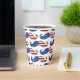 A pattern of patriotic, American flag moustaches in red, white and blue!  Shown here on customisable paper party cups. This design is great for any proud American and you can adjust the size of the pattern and add your favourite colour background instead of the white shown here. Perfect for a 4th of July picnic or barbeque!