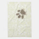 Funny Paw Print on Ivory Damask Pattern Tea Towel