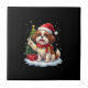 Funny Peace Hand Shih Tzu Christmas Lights Womens Tile