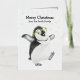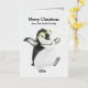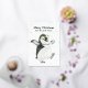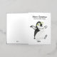 This hand-drawn Christmas card features a wonderfully happy penguin dancing under a flurry of shimmering silver foil snow. Personalise the front with your family name to make it uniquely yours!