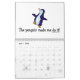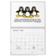 Funny Penguins. Each page has a different graphic cartoon drawing of penguins with funny sayings. Guaranteed to put a smile on your face and make you laugh each month of the year. The Text can be changed / customised. So go ahead, penguin lovers, customise a calendar which you will enjoy all year round with these cute and silly penguins.