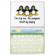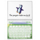 Funny Penguin Calendar. Each page has a different image / cartoon of penguins with funny sayings. Guaranteed to put a smile on your face and make you laugh each month of the year. The Text can be changed / customised. So go ahead penguin lovers, personalise a calendar which you will enjoy all year round.