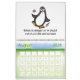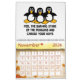 Funny Penguin Calendar. Each page has a different graphic image / cartoon art drawing of penguins with funny sayings / quips. Guaranteed to put a smile on your face and make you laugh each month of the year. A Penguin lover's calendar that will bring joy all year round. Add the year that you want to use it for.