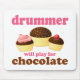Drummer - Will Play For Chocolate design has cupcake logo and funny drummer slogan. Great gift or stocking stuffer for percussionists and drumline members.