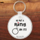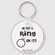 Funny Personalised He put a Ring on it keyring with a red heart, a wedding engagement ring with bride to be name.