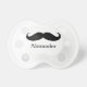 Add a custom personalised name to this funny handlebar moustache moustache pacifier, it's a real conversation starter. Black and white with white background and black facial hair design. This cute and witty pacifier is sure to grab attention, and especially for daddy's boy as a gift for dad at the baby shower.