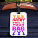 A funny and useful luggage tag with big, bold lettering and wild colours you'll see from far away!