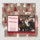 Third year is a charm, optimism and hope for 2022 custom photo card template with a cute minimalist primitive cardinal red, rose coral, and blush pink sweet christmas tree doodles seamless pattern on natural tan / taupe.