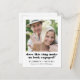 Funny engagement and save the date announcement postcard with a photo of the two of you and the engagement ring and "does this ring make us look engaged" in bold modern typography. On the front, add your first names and wedding date and location. On the reverse, customize your save the date details and add your names in a signature-like script.