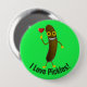For the pickle lover, this is the perfect and funny button. This design features a cartoon pickle man with the text I love pickles at the botton.