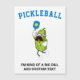 Super fun magnet featuring a pickle playing pickleball. Easily add your own custom text. Makes a fun gift for your pickleball obsessed friends, coach or club/tournament pickleball party favour.
