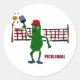 Funny Pickle Playing Pickleball with Net Art Classic Round Sticker