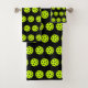 Fun pickleball pattern novelty Bath Towel Set for the pickleball fanatic in your life. Trendy yellow outdoor ball on black socks. You can change the background colour. Makes a great Birthday gift! #pickleball