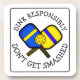 Funny pickleball pun. Dink responsibly. Don't GET SMASHED..