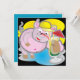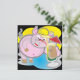 For sale a square invitation with a cool pig drinking a cocktail. In the back, a blue background with the write "Let's party !!!!"