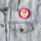 A happy pig on a birthday button or badge. Use "Personalise this template" to tweak the "PERMISSION TO PIG OUT GRANTED" text and create a unique, customised item. Featuring a gleeful pig, beneath a teetering layer cake with lashings of green icing and topped with pink candles.