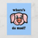 Where's da mud? Funny pet pig shirts, tshirts and gifts for pig lovers. Cute and cool pink pig wondering where the mud bath is. Humourous and adorable pig lover apparel and gifts for any occasion.