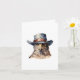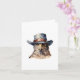 Funny pigeon wearing a cowboy hat, watercolor card