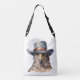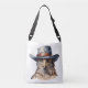Funny pigeon wearing a cowboy hat, watercolor crossbody bag