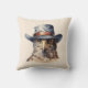 Funny pigeon wearing a cowboy hat, watercolor cushion